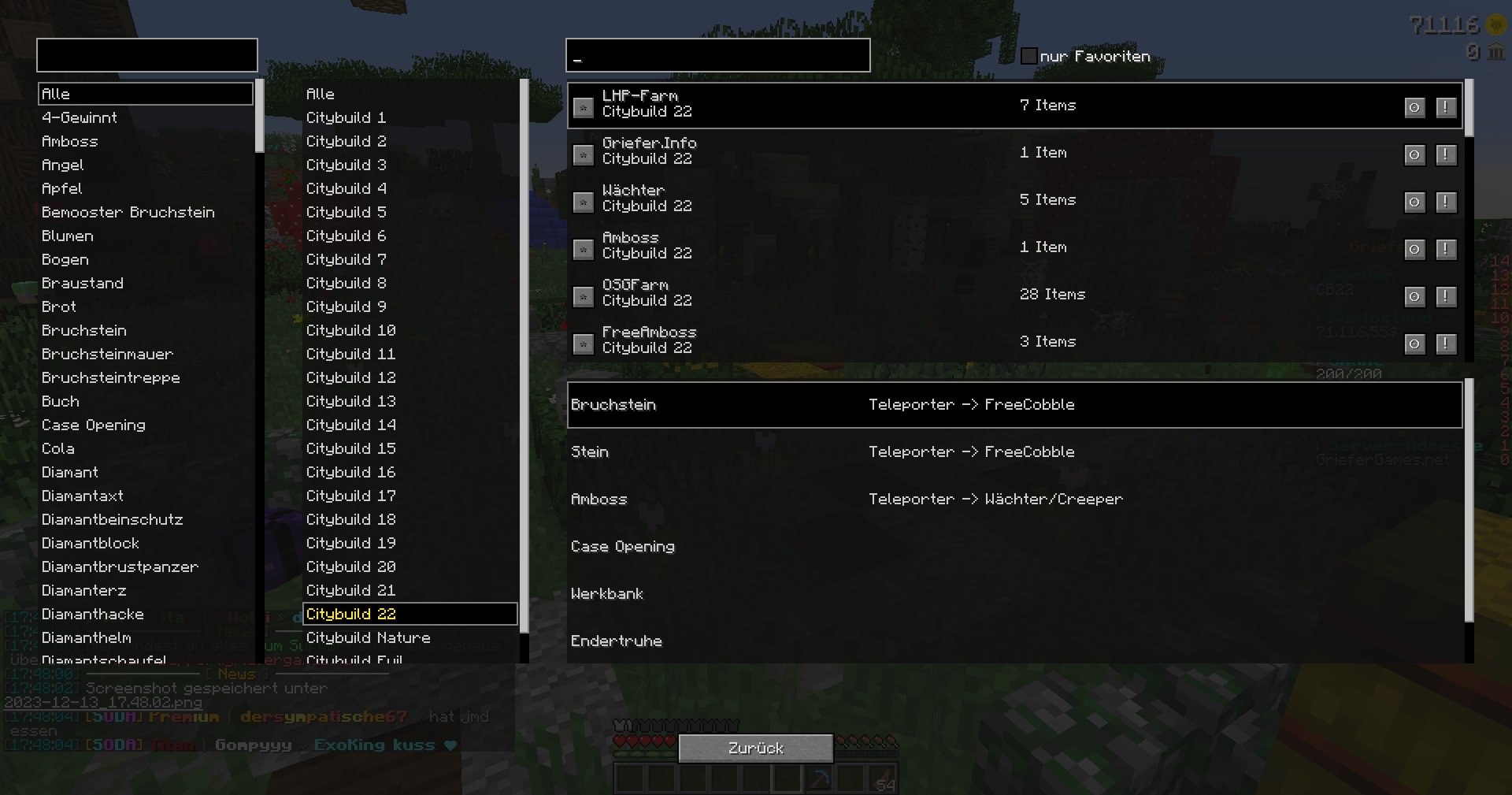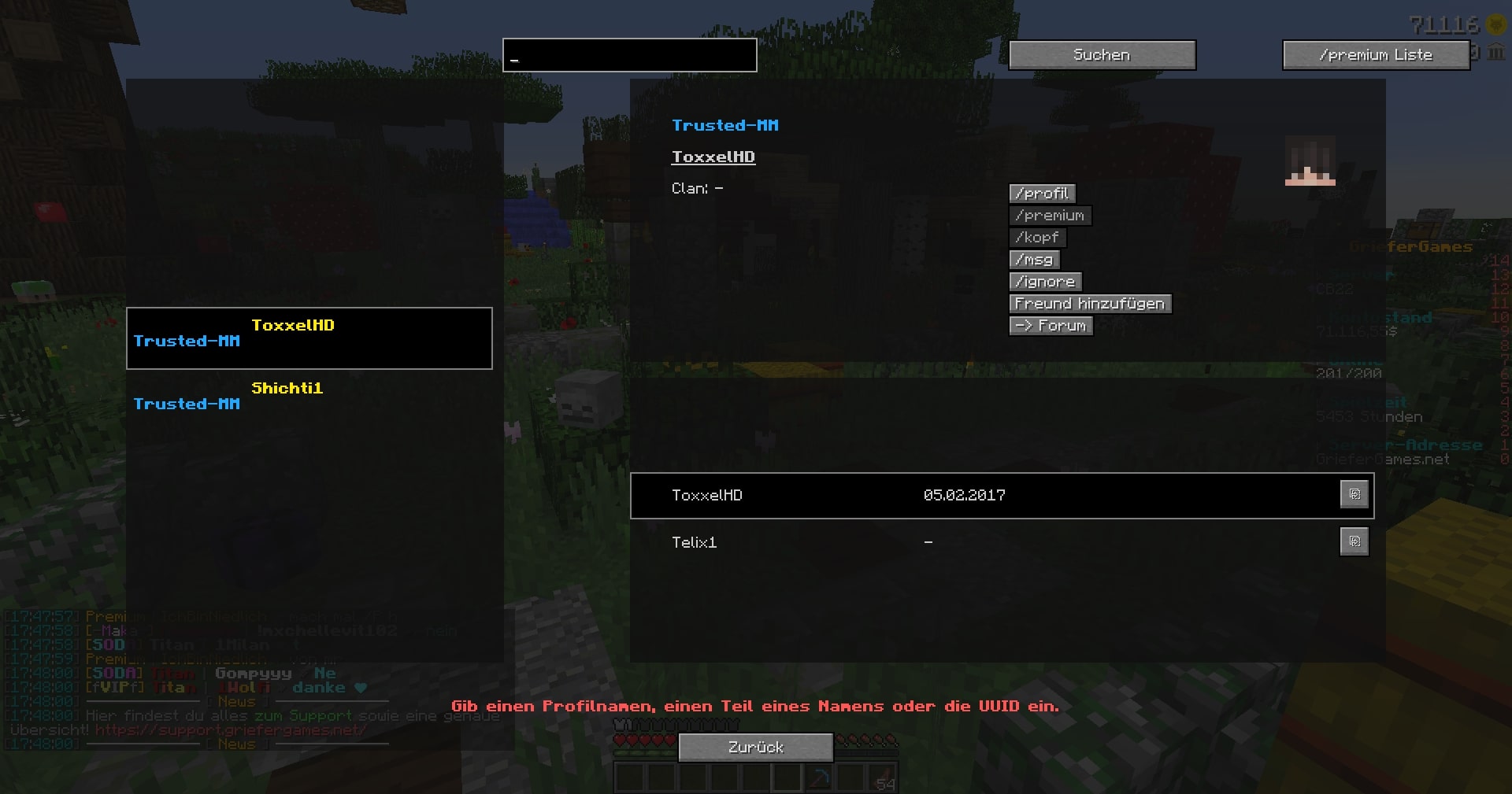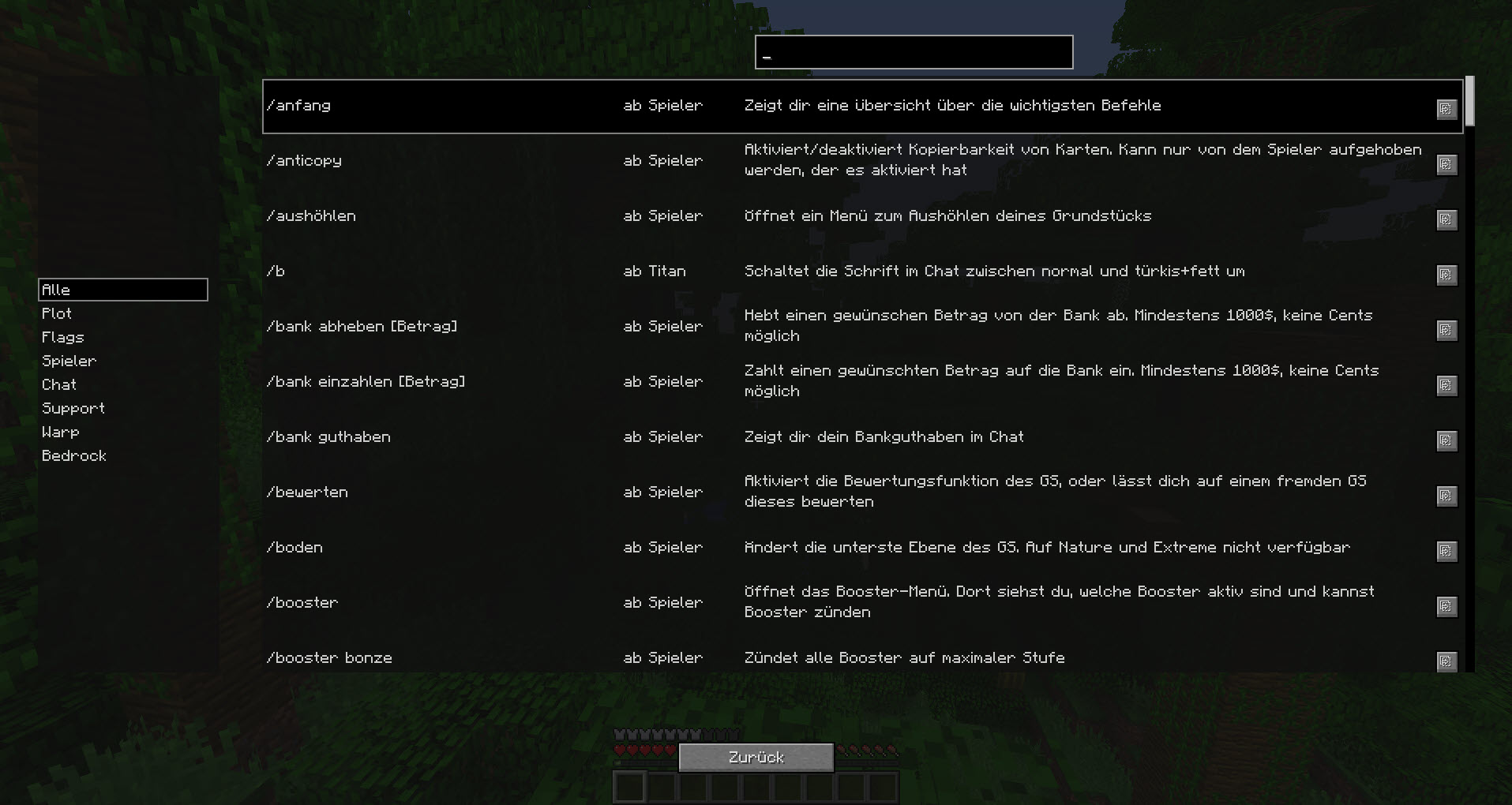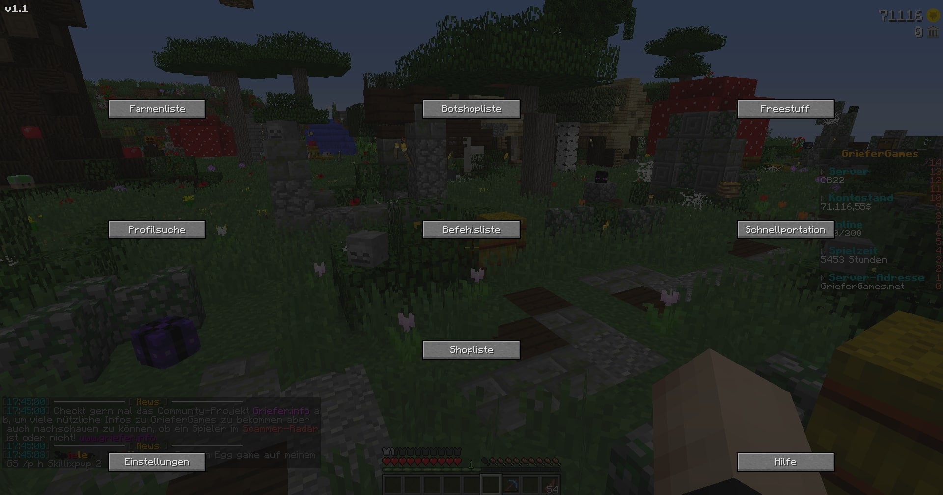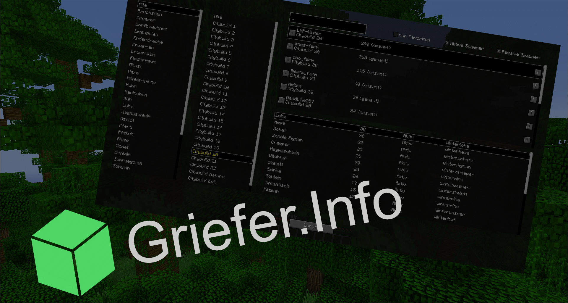 Im folgenden findest du genauere Beschreibungen zu den Wichtigsten Bereichen und deren Bedienung über unsere Griefer.Info Forge-Mod.