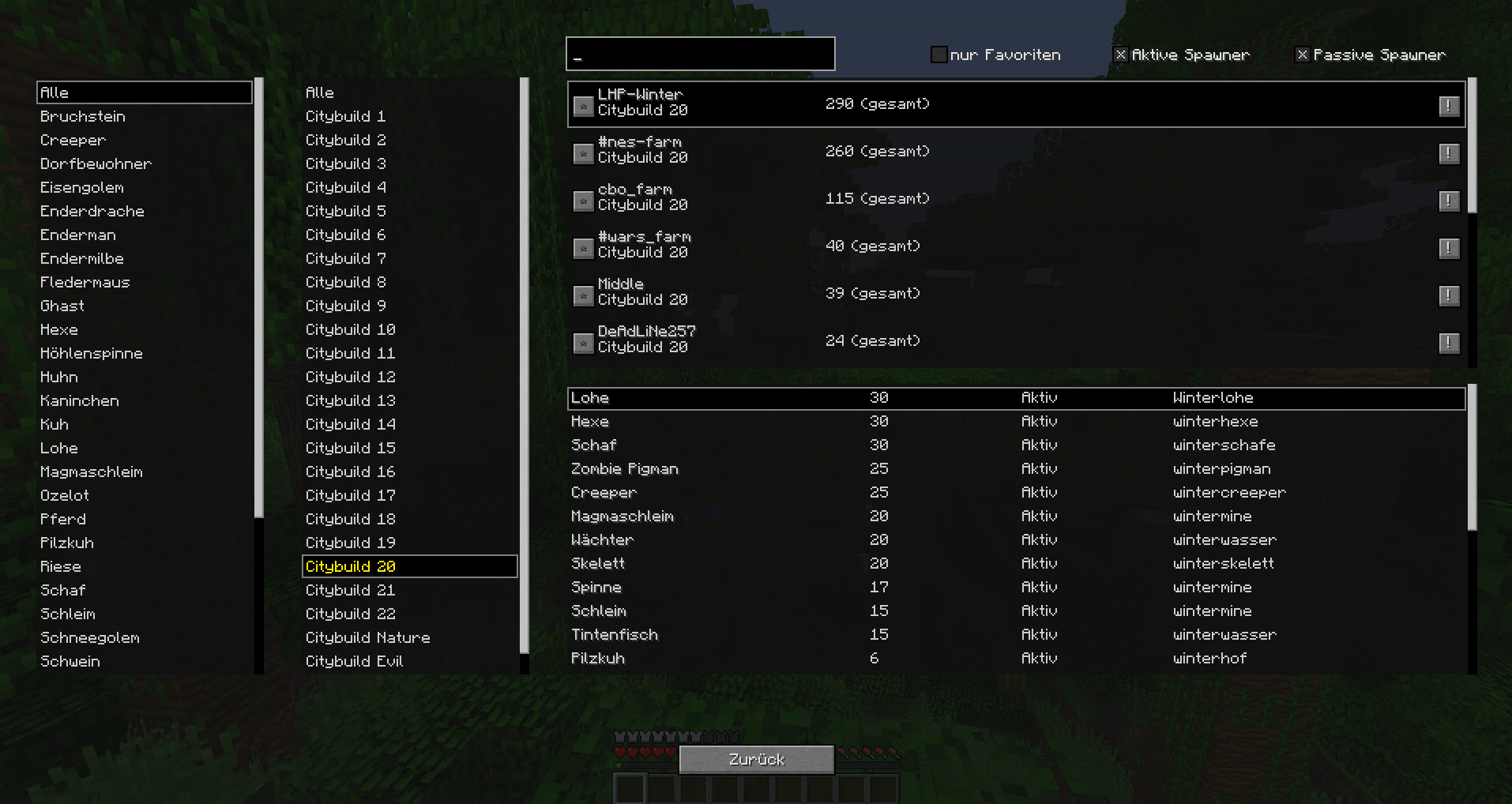 Oben rechts kannst du wählen, ob dir aktive und/oder passive Spawner