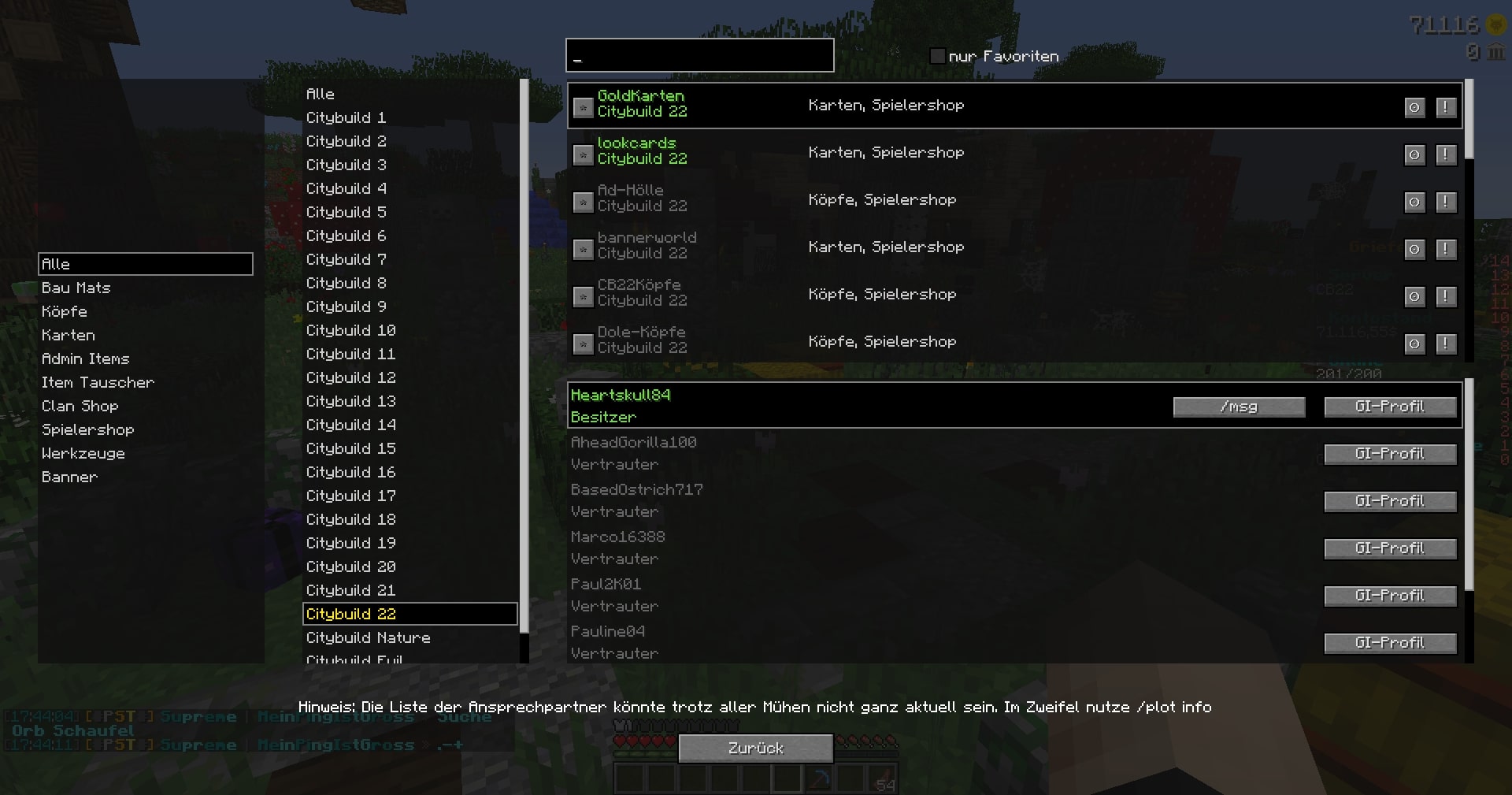 Die Schnellportation ist ein Bonus von uns für dich: Hier kannst du deine eigenen Plots und Homes (kurz: Eintrag) nach Lust und Laune